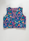 Weer een nieuwe parel in de serie van reversible gilets; reversible cobalt! Dit reversible gilet bestaat uit enerzijds een grote bloemenprint en anderszijds een kleine bloemenprint, beide op een cobalt ondergrond.