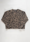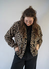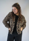 Binnen no time een lievelings van velen in de Gutsy collectie; het Miep vest! Een heerlijk losvallend, boxy model met elastiek onderaan de mouwen. Deze versie voelt heel zacht aan en heeft een ingeweven panterprint. De stof is gemaakt van 49% viscose, 48% polyester/polyamide en 3% elastan.