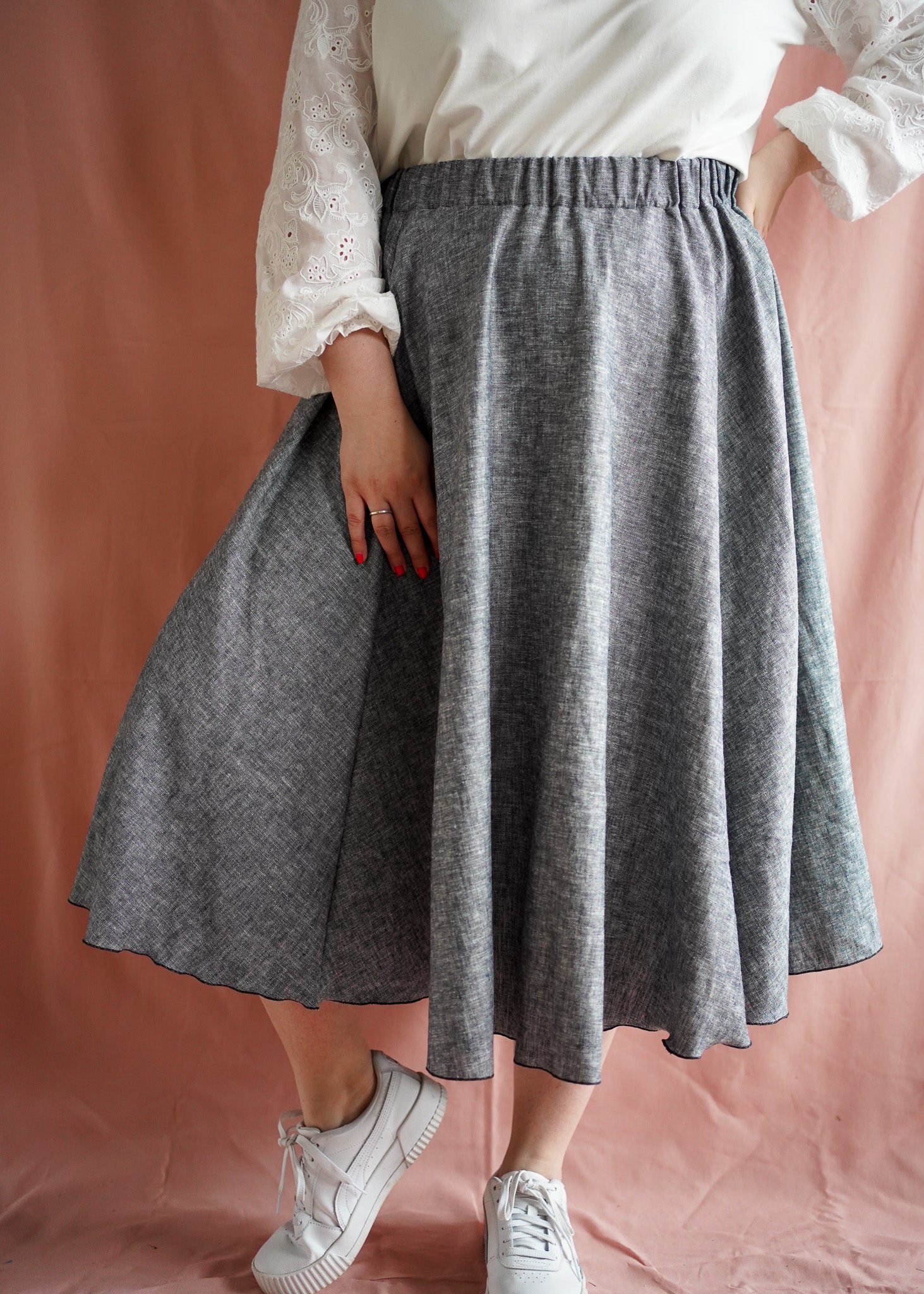 Ontdek de Lena skirt! De Lena maak ik in 3 lengte van 100% viscose. Deze heerlijke rok is gemaakt van een bijna volledige cirkel waardoor ze heerlijk flowy om je heen danst. Ben je meer van de rechtere rokken? Check dan zeker de Sarah!