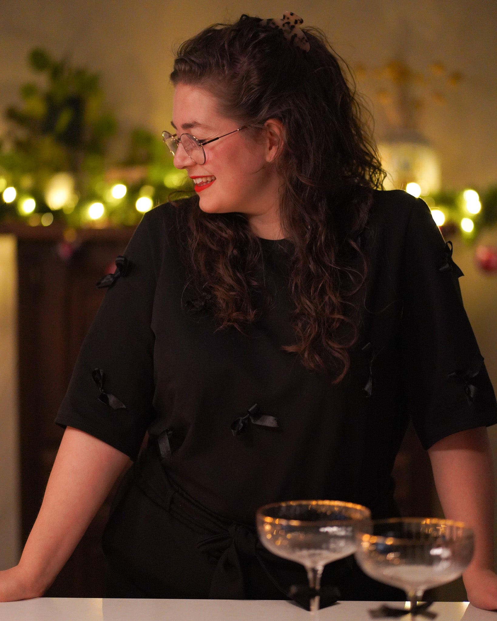 Als je mij vraagt wat mijn favoriet uit de party collectie is, noem ik sowieso deze top; de Willemijn strikjes top! En wat ik er dan zo tof aan vindt? Dit is zo'n item wat de show steelt tijdens de feestdagen en je daarna het hele jaar door draagt. Met een spijkerbroek en sneakers, een rokje met toffe boots of een mooie pantalon en blazer, deze top is altijd een blikvanger! Ohh en ze draagt ook nog een mega comfy doordat ze is gemaakt van french terry katoenen basis ;)